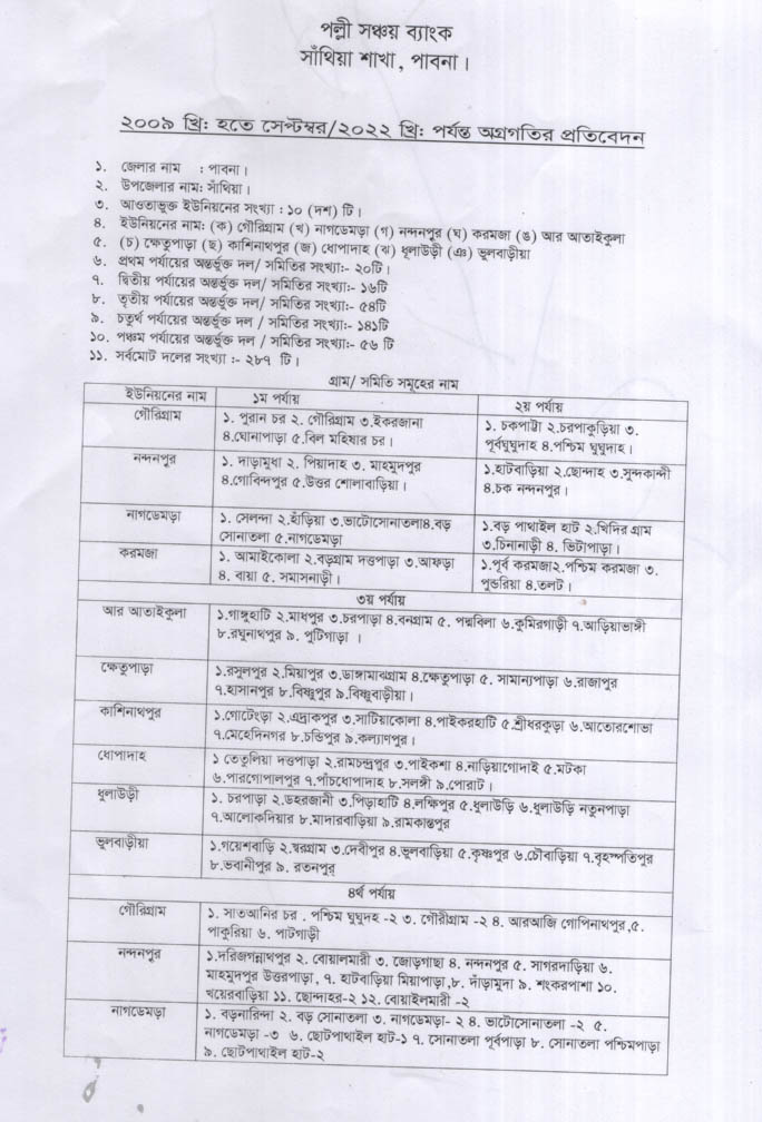 দারিদ্র্য বিমোচনে মাননীয় প্রধানমন্ত্রীর বিশেষ উদ্যোগ একটি বাড়ি একটি খামার প্রকল্প (বতর্মান নাম আমার বাড়ি আমার খামার প্রকল্প) গ্রহণ করা হয় ২০০৯ সালে। উক্ত প্রকল্পের কার্যক্রমকে প্রতিষ্ঠানিক রূপ দেয়ার জন্য ২০১৪ সালে মাননীয় প্রধানমন্ত্রীর অভিপ্রায়ে পল্লী সঞ্চয় ব্যাংক প্রতিষ্ঠিত হয়। ব্যাংকের অনুমোদিত মূলধন ১ হাজার কোটি টাকা এবং পরিশোধিত মূলধন ২০০ কোটি টাকা, প্রতিটি শেয়ারের মূল্যমান ১০০ টাকা। ব্যাংকের ৫১% শেয়ারের মালিক সরকার এবং ৪৯% শেয়ারের মালিক সমিতি সমূহ। ব্যাংকের পরিচালনা বোর্ড এর সদস্য সংখ্যা ১৫ জন, তম্মধ্যে সরকার কর্তৃক নির্বাচিত ৮ জন এবং প্রতি প্রশাসনিক বিভাগ হতে সমিতি কর্তৃক নির্বাচিত ১ জন। ব্যাংকের মূললক্ষ্য দেশের দরিদ্র ও সুবিধা বঞ্চিত মানুষদেরকে নিয়ে সমিতি করে সমিতির তহবিল গঠন, সদস্যদের সঞ্চয় প্রবনতা বৃদ্ধি, দরিদ্র জনগণের দারিদ্র্যতা বিমোচন, নারীদেরকে আয় বধর্ক কাজে নিয়োজিত করেআর্থিক ভাবে স্বাবলম্বী করা , অর্থনৈতিক ও সামাজিক উন্নয়ন এবংনারীর ক্ষমতায়ন বৃদ্ধি, সদস্যদের প্রশিক্ষণ প্রদানের মাধ্যমে দক্ষতা বৃদ্ধি, সমিতি ও সদস্যদের সঞ্চয় ও অর্জিত সম্পদের লেনদেন ও রক্ষণাবেক্ষণ, ঋণ ও অগ্রিম প্রদান ইত্যাদি কার্যাদি সম্পাদনের মাধ্যমে দেশ থেকে দারিদ্যতা বিমোচন করা। নারীদের ক্ষমতায়ন এবং তাদেরকে আর্থিকভাবে স্বাবলম্বী করার লক্ষ্যে প্রতিটি সমিতিতে ৬০ জন সদস্যের মধ্যে ৪০ জন মহিলা সদস্য রয়েছে। ব্যাংক সমিতি সমূহের এসএনডি হিসাব, সদস্যদের সঞ্চয়ী আমানত হিসাব, মাসিক ডিপোজিট হিসাব, স্কুল ব্যাংকিং হিসাব ইত্যাদি পরিচালনা করছে। সমিতির সদস্যের কৃষি পণ্য যাতে কম মূল্যে বিক্রি করতে না হয় তার জন্য স্বল্প সেবা মূলে ঋণ প্রদানসহ অন্যন্য বিভিন্ন উৎপাদমূখি খাতে স্বল্প সেবা মূল্যে ঋণ প্রদান করে থাকে। ব্যাংক ১ লক্ষ উদ্যোক্তা সৃষ্টির লক্ষ্যে তাদেরকে প্রশিক্ষণ ও স্বল্প সেবা মূল্যে ঋণ প্রদান করছে। ব্যাংক সদস্যগণের উন্নয়নকল্পে নতুন নতুন খাতে ঋণ প্রদান করছে। পল্লী সঞ্চয় ব্যাংক আইন অনুযায়ী প্রকল্পের আওতায় ৩০/০৬/২০১৬ তারিখের পূর্বে গঠিত ৪০২১৬টি সমিতির দায় ও সম্পদ ইতোমধ্যে ব্যাংকে স্থানান্তরিত হয়েছে এবং পরবর্তীতে গঠিত সমিতি সমুহের মধ্যে তহবিল গঠণ শেষে পর্যায়ক্রম ব্যাংকে স্থানান্তরিত হচ্ছে। এ পর্যন্ত ৫৭২৯৩টি গ্রাম সমিতি ৩২ লক্ষ সদস্য এবং তহবিলসহ ব্যাংকে স্থানান্তরিত হয়েছে। প্রকল্প মেয়াদ আগামী জুন, ২০২০ সালে শেষ হলে বাকী সমিতি সমূহ ব্যাংকে স্থানান্তরিত হবে। প্রকল্প হতে সকল সমিতি স্থানান্তরের পর মোট সমিতি সংখ্যা হবে ১.২০ লক্ষ এবং সদস্য সংখ্যা হবে প্রায় ৫৫ লক্ষ। সারা দেশের প্রত্যন্ত অঞ্চলে এ সমিতি সমুহ পরিচালিত 